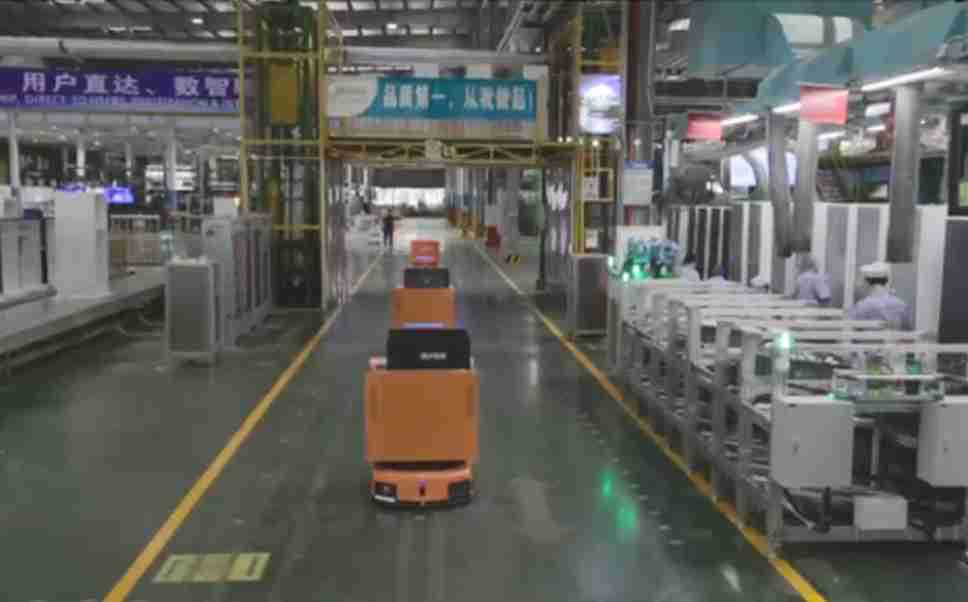 为车载冰箱物流配送打造的智能解决方案,,包含产中物流通过潜伏举升AMR搬运至线边,,,产后成品物流智能仓储,,,流程包含产中物流智能齐套入库,,,,线边安灯叫料AMR智能配送至线边,,,,成品入库、、、、出库,,,,通过无人堆高车机器人,,,,智能仓储管理替代人工作业管理,,,,实现更高存储、、、、更高效率、、、更具柔性化的解决方案。。。